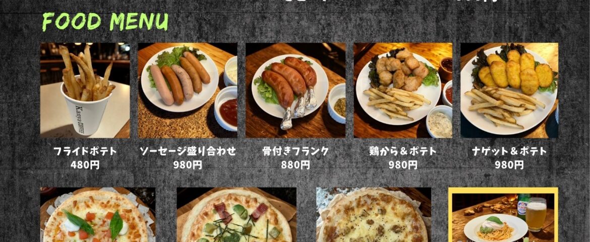 スピードメニューの枝豆やミックスナッツに加えて、骨付きフランクやから揚げ、ナゲットのセット、ピザもリニューアル致します。